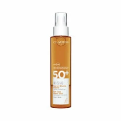 Sun Care Water Mist SPF 50+ is a fast-absorbing spray that refreshes and hydrates the skin. This high protection mist contains Senna to protect skin from the harmful effect of the sun. This modified suncare range contains a unique combination of Clarins complexes containing high-level filters and plant based extracts to provide protection against UV rays and visible signs of photo-aging. The best ally for an invisible and lightweitgh water solar sun protection.The new packaging has been created in partnership with Plastic Odyssey to included recycled materials and help fight against the problem of plastics.